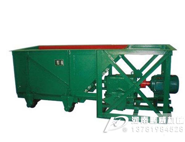 槽式給料機(jī)可以架設(shè)于地面,也可以吊裝在礦倉卸料口上。槽底板作往復(fù)運(yùn)動(dòng),其沖次為 20-60 次/min, 沖程為20-200mm。沖程可由驅(qū)動(dòng)裝置偏心輪進(jìn)行適當(dāng)調(diào)整,偏心距為沖程之半。據(jù)一些選礦廠生產(chǎn)實(shí)踐,對于粘性礦石,偏心距不應(yīng)小于 30mm 。槽式給料機(jī)的槽體寬度約為給料最大粒度的 2-2.5 倍。最大的槽式給料機(jī),可滿足小于 500mm 粒度鐵礦石的給礦 。最常選用的規(guī)格是 980*1240 槽式給料機(jī),其給料粒度為 350-0mm ,適于作為 400*600 鄂式破碎機(jī)的給料設(shè)備。