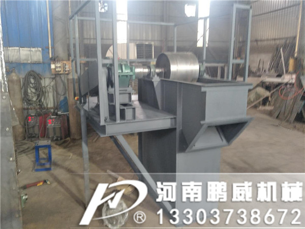 TD型斗式提升機主要由驅(qū)動裝置、上部區(qū)段、料斗與橡膠帶、中殼體、帶檢修門的中殼體、下部區(qū)段等組成,其主要結(jié)構(gòu)特點是:采用橡膠帶作為牽引構(gòu)件,具有自重小、撓性好、運行平穩(wěn)、磨損小的特點。殼體之間、檢修門與殼體之間處均設(shè)置有密封裝置,保證無粉塵外泄,清潔、環(huán)保。機殼和頭罩設(shè)有多個檢修門,一旦出現(xiàn)故障或者需要更換料斗等易損件時,可以便捷的進行檢修或更換。在傳統(tǒng)裝置內(nèi)部設(shè)有高可靠性的逆止機構(gòu),在防止牽引件和載料料斗逆行的同時,使傳動裝置整體結(jié)構(gòu)緊湊、占用空間小。中部殼體均為折彎構(gòu)件焊接而成,在提高機殼整體剛度的同時,使機殼各段節(jié)具有良好的通用性和互換性,保證組裝完畢后,機殼具有良好的垂直度。在底部設(shè)有張緊機構(gòu),保證工作時皮帶有足夠的預(yù)緊力;同時在底部滾筒裝置中帶有自動調(diào)心機構(gòu),以防止?jié)L筒受到不均勻拉力后發(fā)生傾斜,進而造成設(shè)備故障。