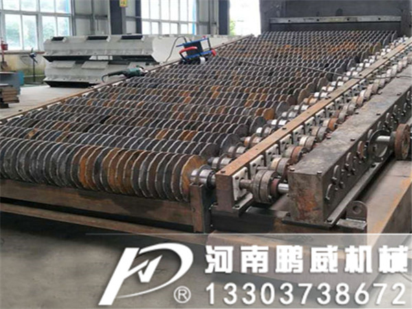石灰石輥軸篩由多組同向轉(zhuǎn)動的篩軸組成,篩軸上裝有若干篩片,相鄰篩軸上的篩片相互交叉組成篩孔,小于篩孔的物料在運轉(zhuǎn)過程中透篩,大于篩孔的塊狀料在篩片上滾動從出料口排除。新型石灰石輥軸篩顛覆傳統(tǒng)篩分概念,適用篩分煤種,特別是高水分、高黏性、泥化嚴(yán)重的煤種,具有脫泥效率的優(yōu)勢,將成為代替?zhèn)鹘y(tǒng)篩分設(shè)備的新一代篩分機(jī)。滾軸篩的篩面由很多根平行排列的、其上交錯地裝有篩盤的輥軸組成,滾軸通過鏈輪或齒輪傳動而旋轉(zhuǎn),其轉(zhuǎn)動方向與物料流動方向相同。為了使篩上的物料層松動以便于透篩,篩盤形狀有偏心的和異形的。為防止物料卡住篩軸,裝有安全保險裝置。滾軸篩全部為座式,有左傳動和右傳動之分,又分帶走輪和不帶走輪的,帶走輪的可在鋼軌上移動。
